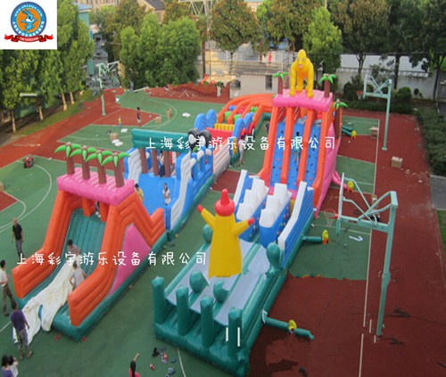是國內第一批制作生產充氣游樂設備廠家。產品從原材料到生產、測試每一道工序都嚴把質量關。彩宇的宗旨:質量第一、互利雙贏。
